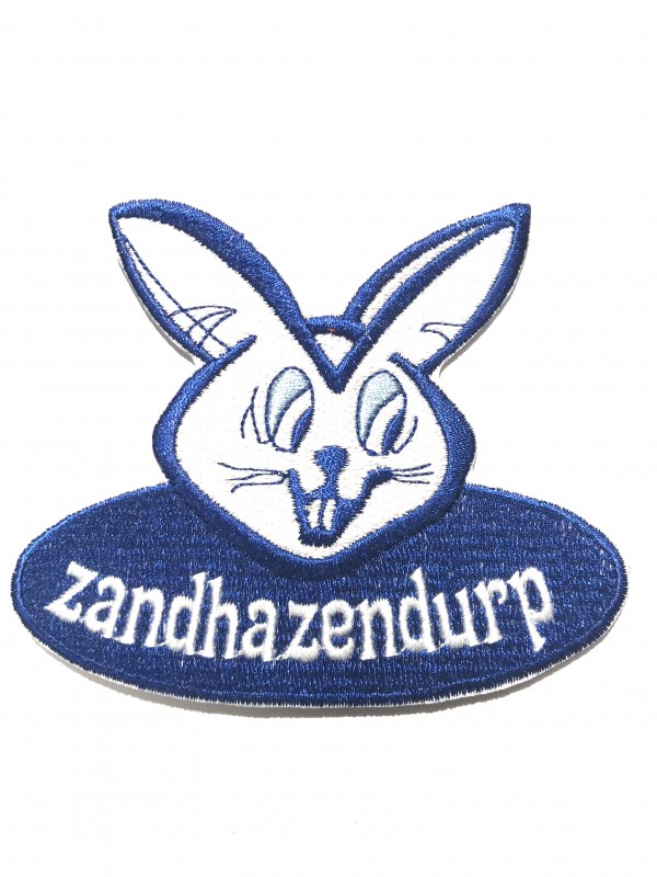 Embleem Zandhazendurp. Deze is ook als groot rugembleem verkrijgbaar.