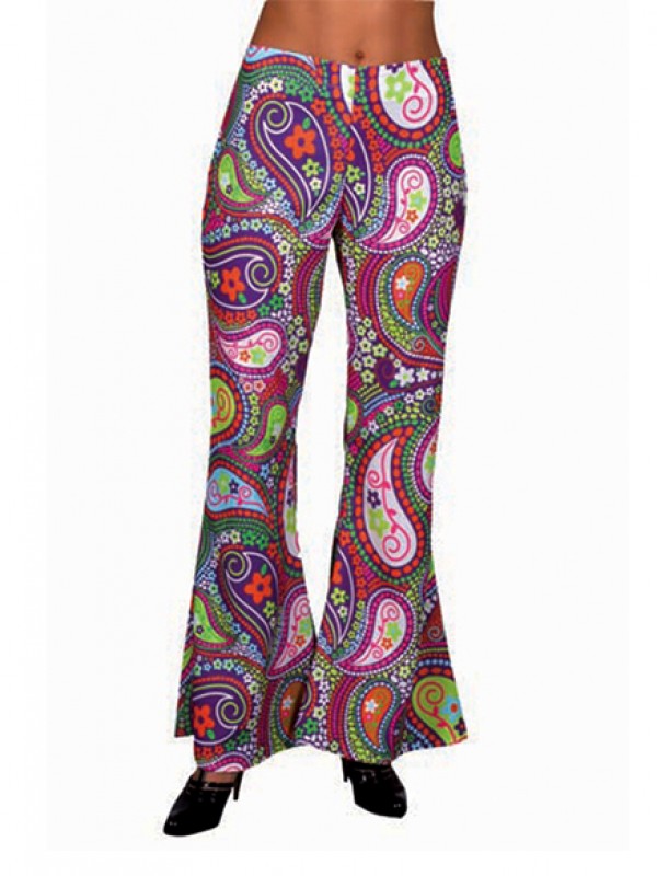 Vrolijke hippiebroek met breed uitlopende broekspijpen.