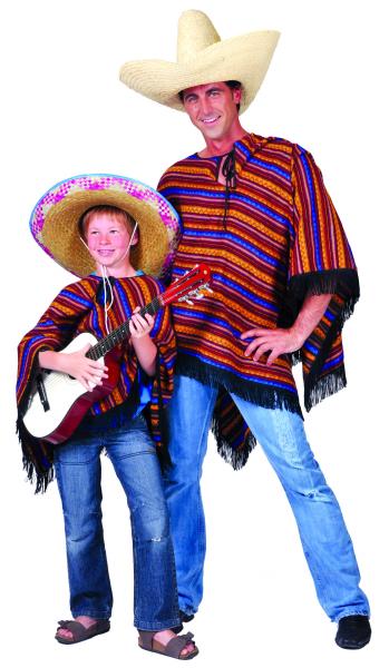 Mooie poncho met streepmotief en franjes in volwassen maat.