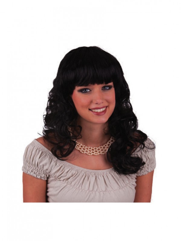 Zwarte half lange pruik met krullen